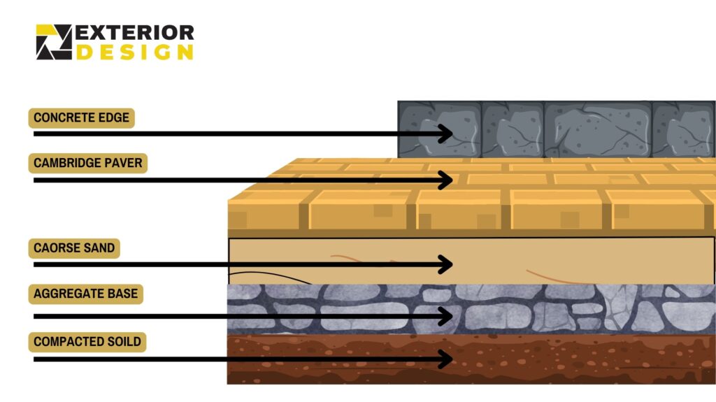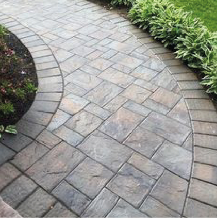 We install our walkways according to manufacturer specifications. We start with a 4-6 inch crushed material base, compacted with a gas-powered plate compactor, followed by a ¼ inch layer of fine mason sand for leveling. The next step is paver installation, concreting the edges, and finally applying polymeric sand to the joints for a long-lasting finish.